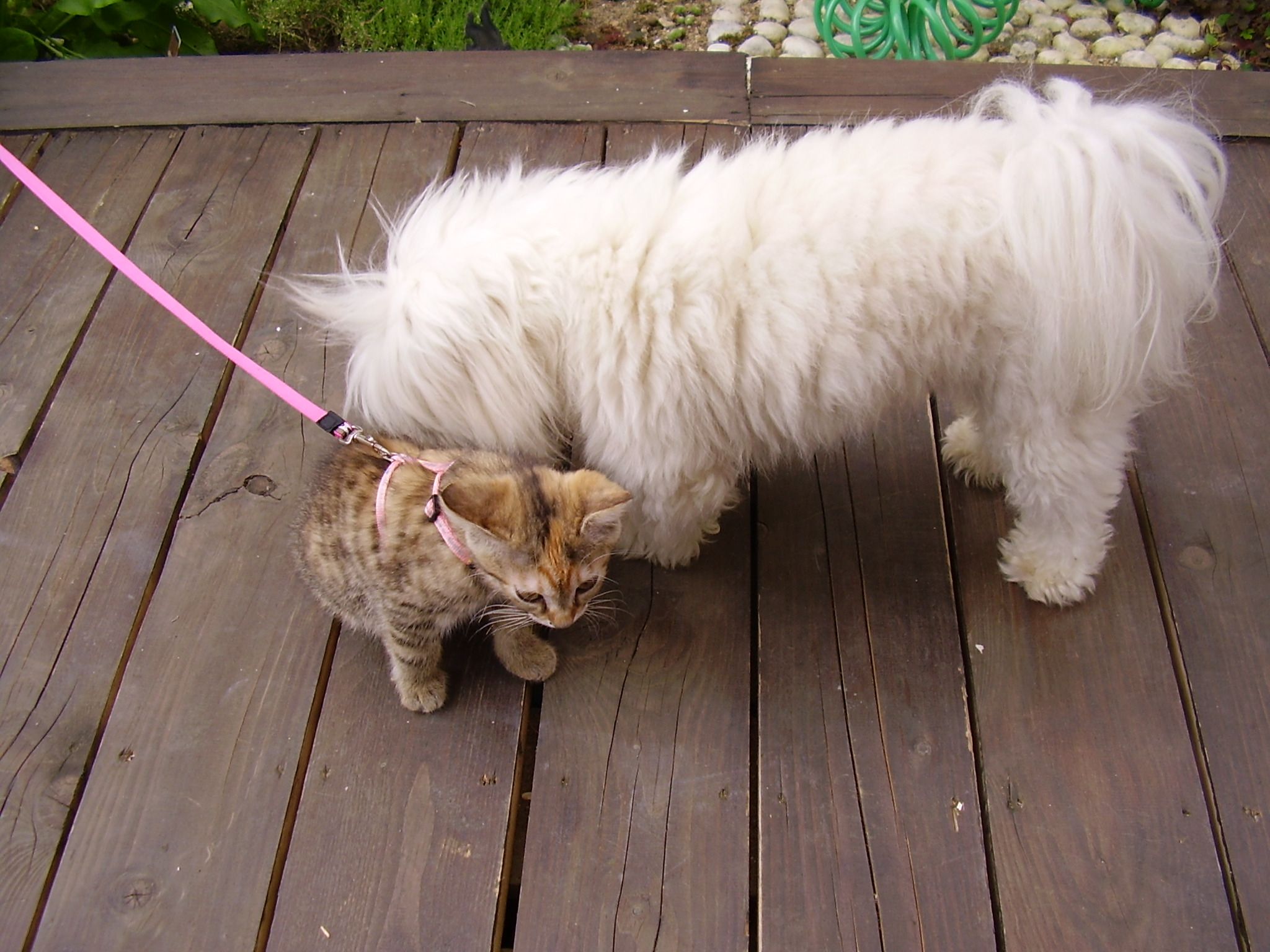 En compagnie de son copain de jeux :